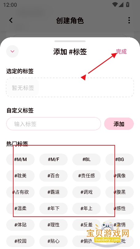 3、添加标签,点击完成