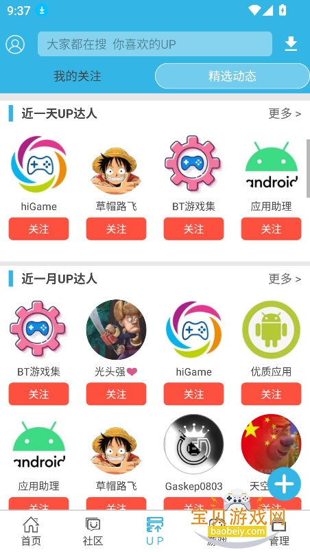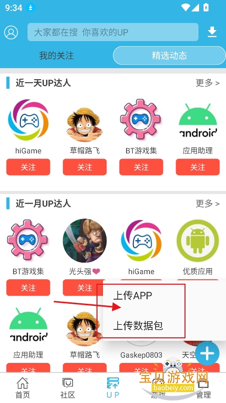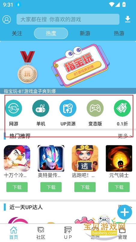 UP资源上传:支持用户自主分享应用/游戏,可作私人云盘与分享工具。