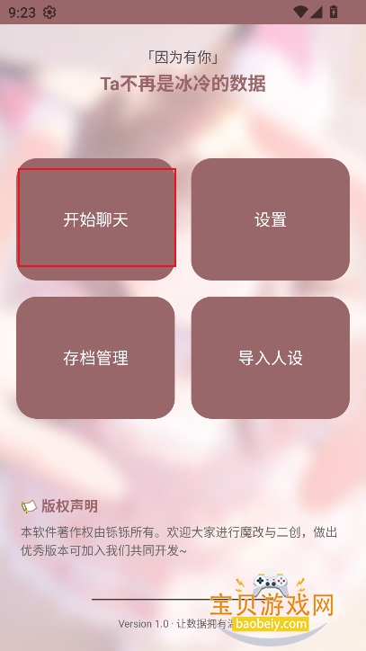 1、导入人设,以及秘钥之后,点击【开始聊天】
