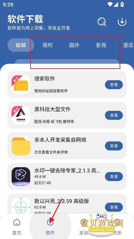 1、进入【软件】界面,筛选喜欢的资源内容