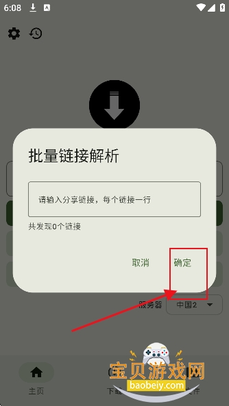 4、粘贴剪切板内容并解析,输入解析地址,点击确定,如果自动获取剪切板内容开关打开,则会自动解析