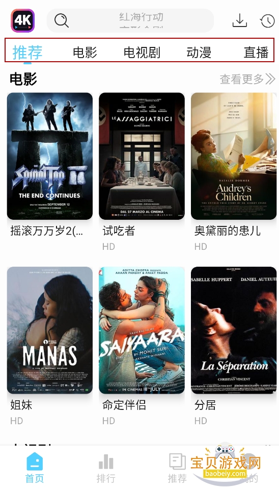 1、下载安装并打开4K剧下饭后,在首页中选择想要观看的影视剧。