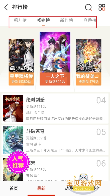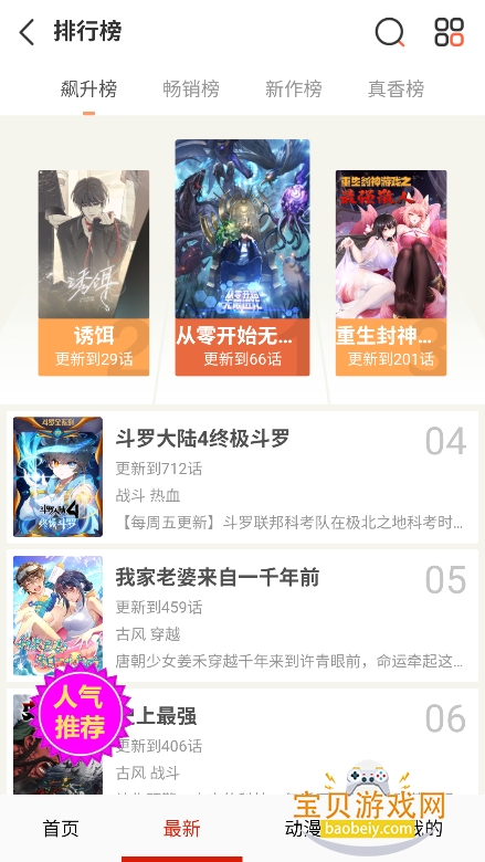 2、进入【最新】还可以查看最新热榜,飙升榜等