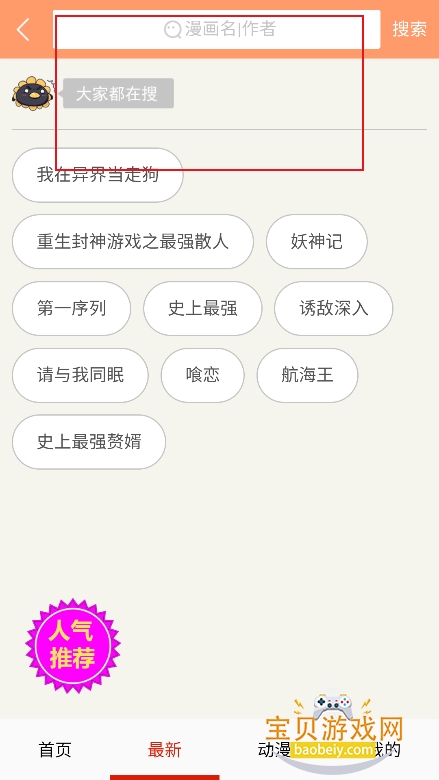 3、或者点击搜索框,输入关键词,搜作者,搜漫画名等