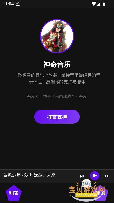 包含单曲/列表循环、随机播放、定时关闭、锁屏播放、歌词同步显示等实用功能。
