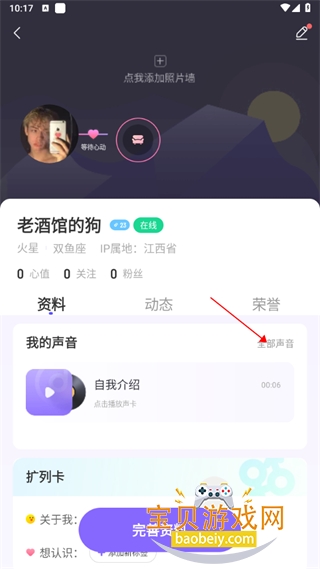 1、打开软件,进入个人主页,点击“全部声音”选项。