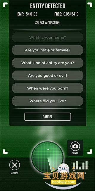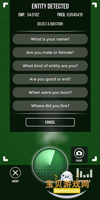 GhostDetector幽灵探测器的界面设计充满了未来感,科技感十足。应用的主界面简洁明了,让用户能够快速上手。最引人注目的功能之一就是它的感应雷达功能,用户可以通过手机的相机扫描周围的环境,而雷达则会标出潜在的“幽灵”存在。当检测到幽灵时,雷达会发出警告并显示相关影像,这种设计极大增强了娱乐性和神秘感。