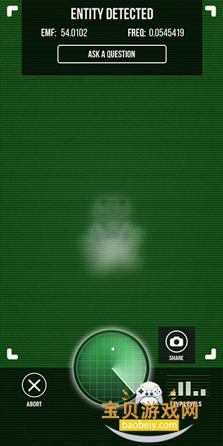 2、发现幽灵后,屏幕中会出现虚影,并且点击上方【ASK A QUESTION】按钮可以与幽灵互动。