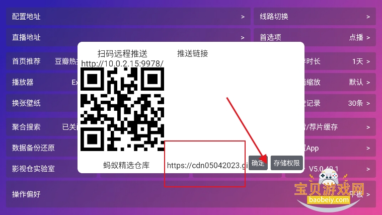 3、输入配置地址,点击确定,返回首页即可