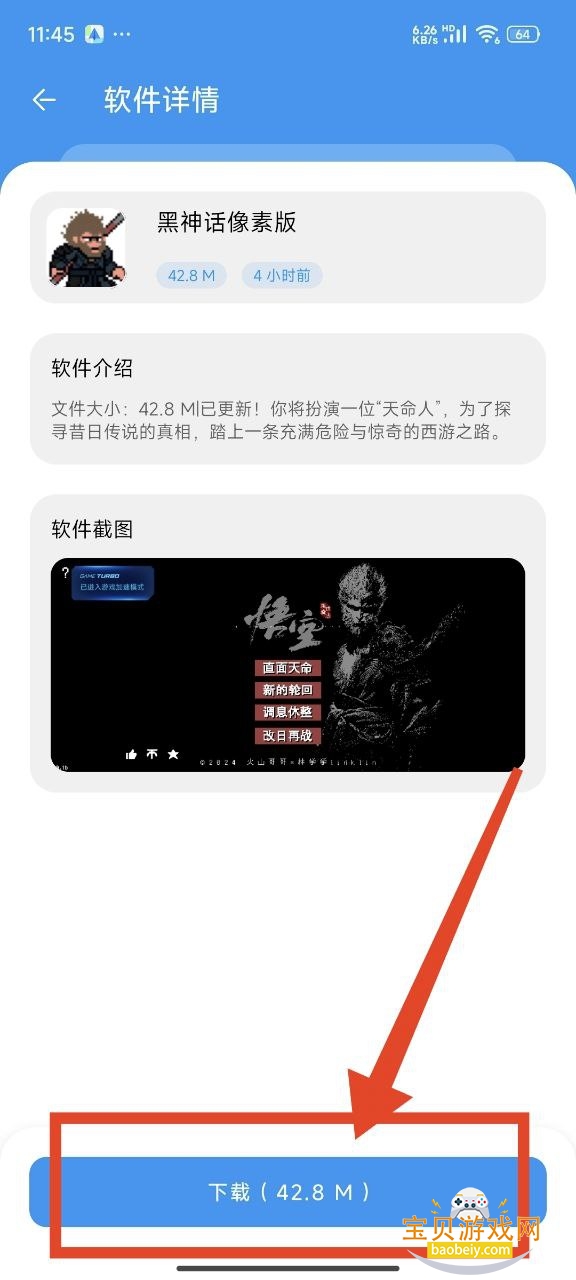 3、确认后,在详情页中点击【下载】按钮,即可获取该游戏的安装包。