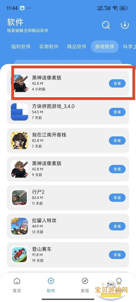 2、例如进入【游戏】类别,在游戏列表中,您可以浏览到许多在官方商店可能无法找到的游戏安装包。找到感兴趣的游戏后,点击进入其【详情页面】,查看游戏介绍、截图等信息。