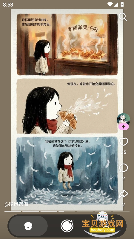 -零门槛漫画创作:无需任何绘画基础,依托AI辅助创作工具与简易编辑功能,用户只需输入创意构想、角色设定或故事脚本,即可快速生成漫画画面,完成视觉表达,轻松实现从想法到作品的转化。