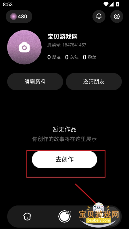 1、进入【我的】界面,点击【去创作】