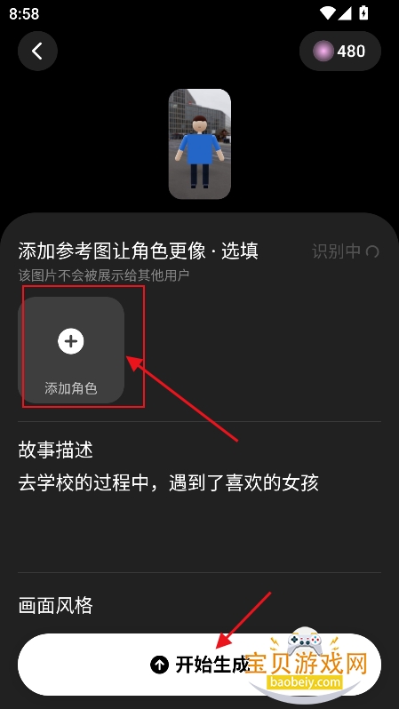 7、然后添加人物角色,生成风格等,最后点击生成即可