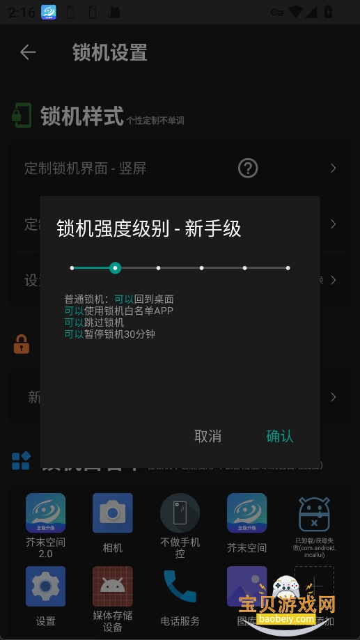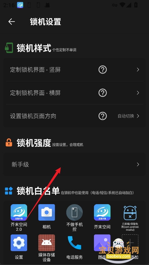 3、在设置页面选择锁机强度