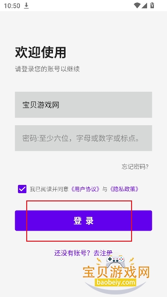 2、新用户直接点击【去注册】任意输入账号,密码,就可以注册成功
