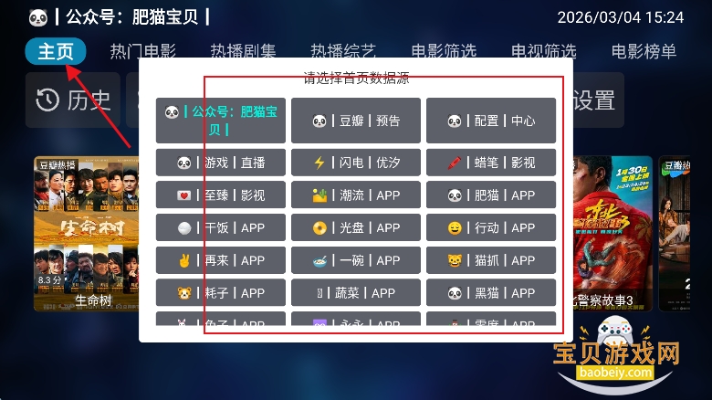 进入首页界面,点击【首页】就可以切换到任意数据源