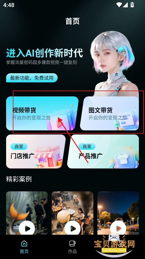 1、进入首页,可以选择【视频带货】或者【图片带货】