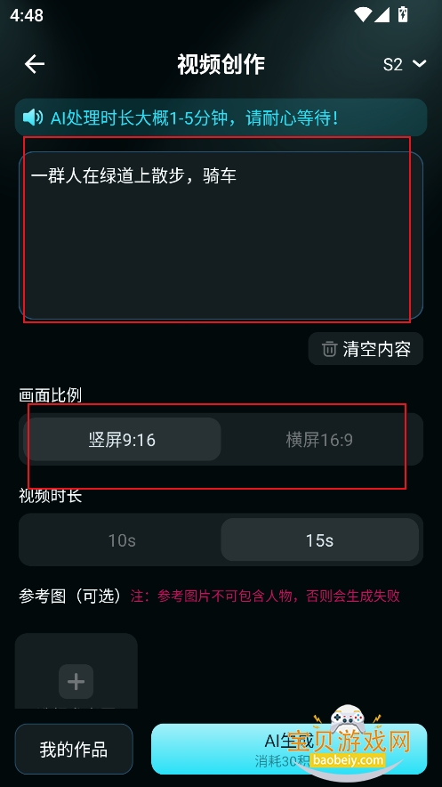 2、进入ai视频生成界面,在文本框输入描述,风格等
