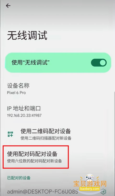 3、进入到系统设置-—开发者选项——无线调试—-使用配对码配对设备。