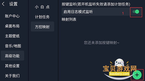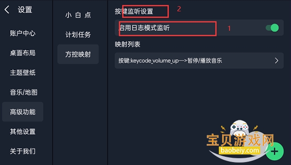 3、开启日志监听模式,桌面设置-高级设置-方控映射-图一开关打开