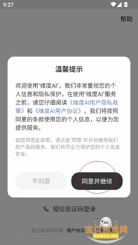 1、在宝贝游戏网下载安装,点击【同意并继续】进入界面