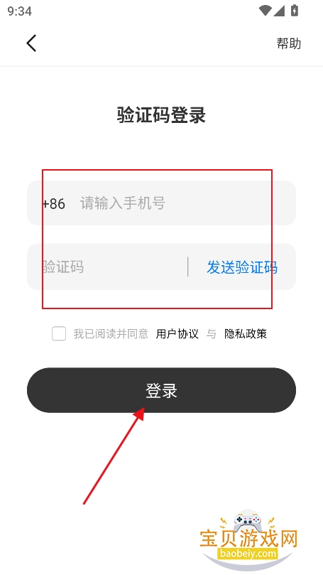 3、在登录界面,输入手机号,接收验证码,点击登录,新手机号自动注册