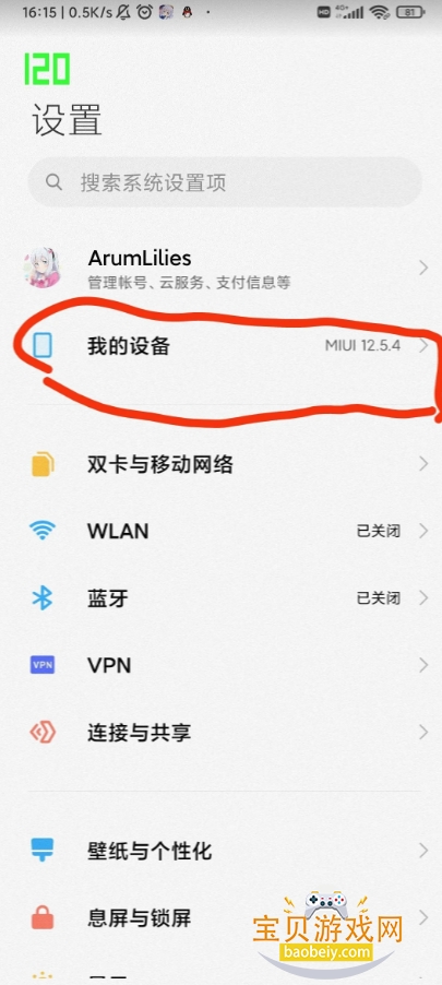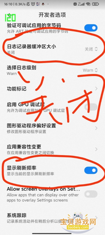 4、这里可以看到刷新率120这个功能已经成功打开了;