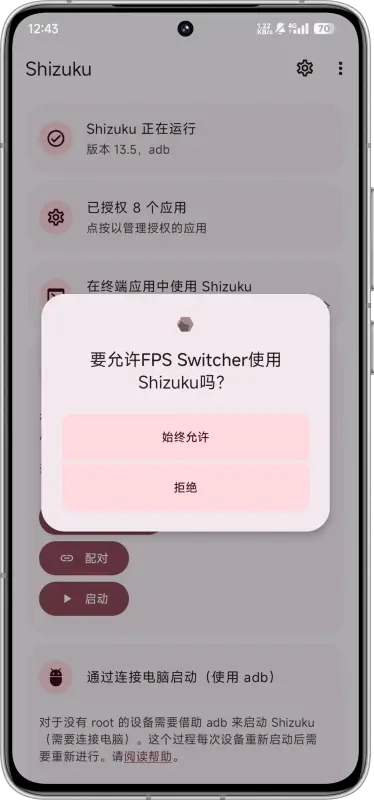 FPS Switcher需要配合Shizuku框架使用,这保证了软件的权限和操作安全性,同时避免了复杂的系统修改步骤。