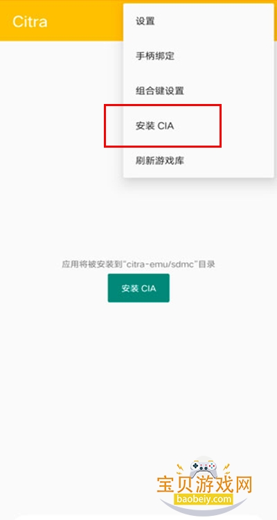 2、点击右上角的三个点,在弹出的菜单项中选择“安装cia”