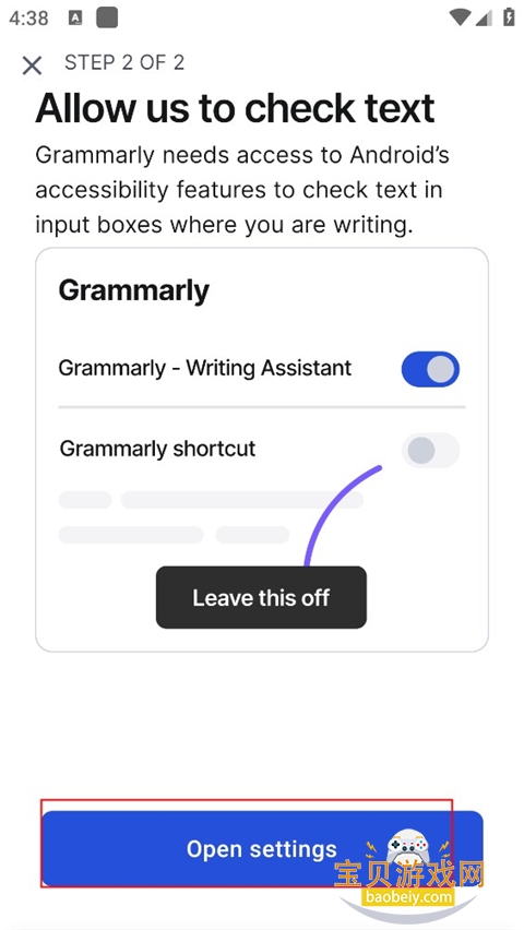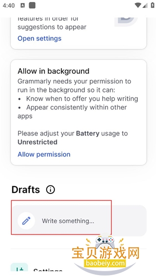 1、在本站下载Grammarly app后,点击下方的open settings;