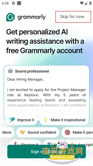 GrammarlyApp提供复杂的语法检查、上下文拼写检查、高级标点符号更正、词汇增强和同义词查找器等功能,确保你的文字无误。