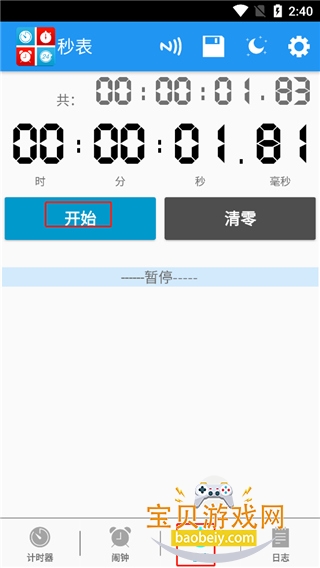 4、点击秒表,用户只需点击开始,它就会按毫秒开始记时;
