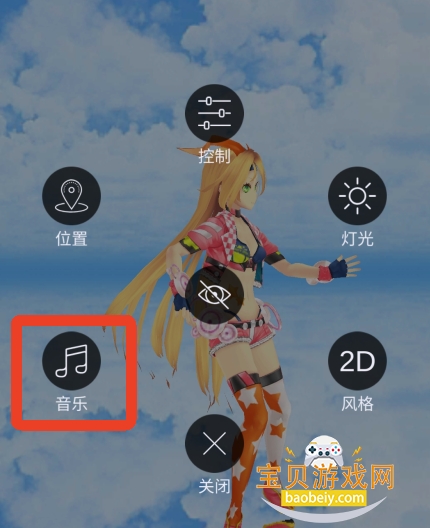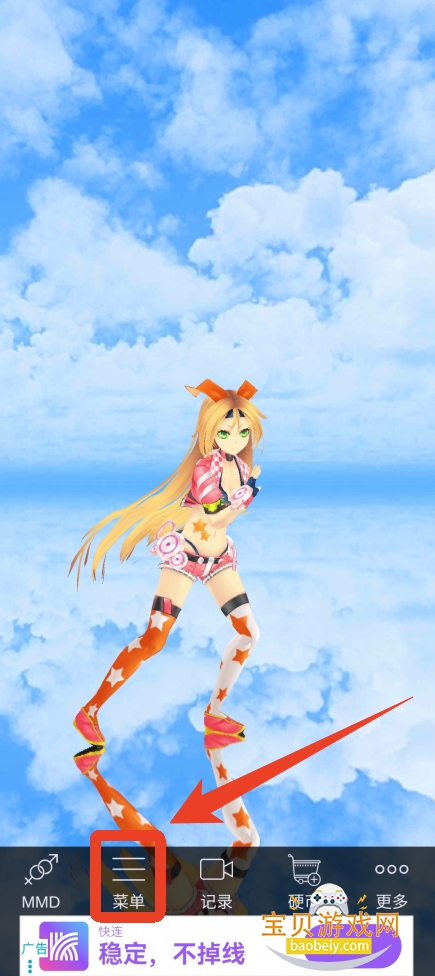 6、返回到主页面,可以看到角色已经开始跳舞了。这时候点击第二个选项【菜单】。