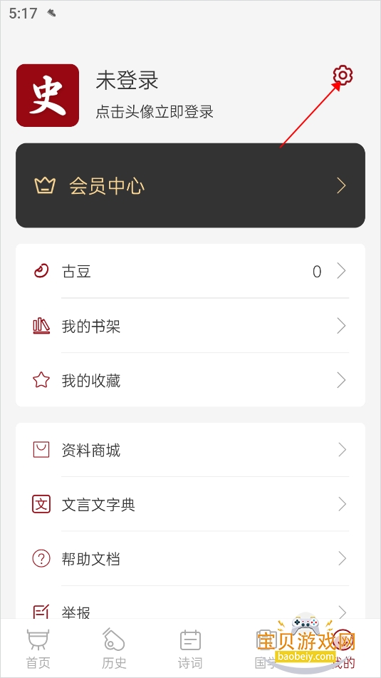 1、打开并进入到中华历史app主界面,点击右下角的“我的”按钮