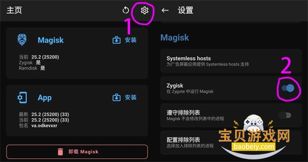 2、打开magisk,如果没有可以在本站搜索下载哦-设置-开启 Zygisk。