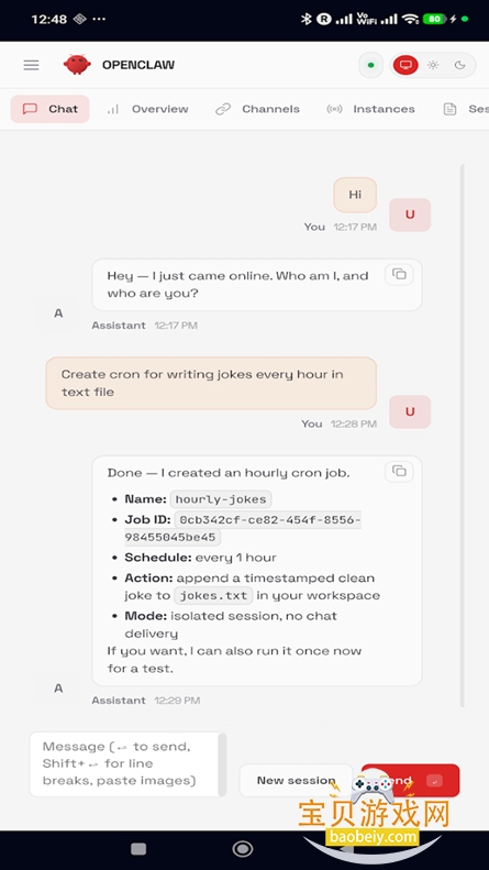 1、在宝贝游戏网安装OpenClaw完成后打开,点击一键自动化的进行下载。