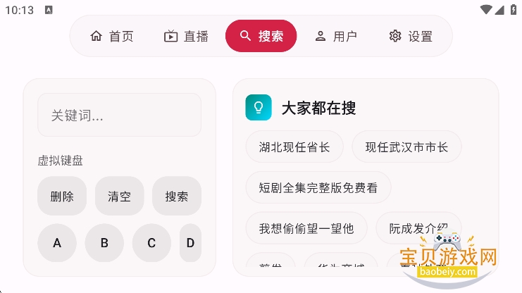 搜索功能:内置适配电视操作的虚拟键盘,可搜索感兴趣的创作者与内容(部分版本暂未完善)。