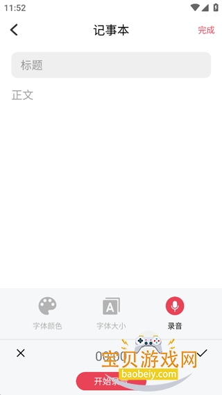 2、在记事本中点击录音栏,并开始录音,最后命名标题即可保存