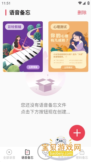 1、点击首页下方的“语音备忘”,并点击按钮新建