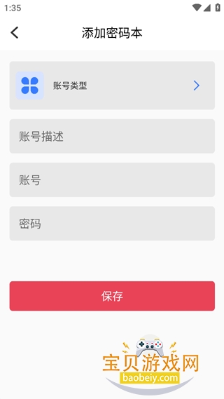 2、之后点击按钮新建,添加密码本后页面输入你的账号信息即可保存。