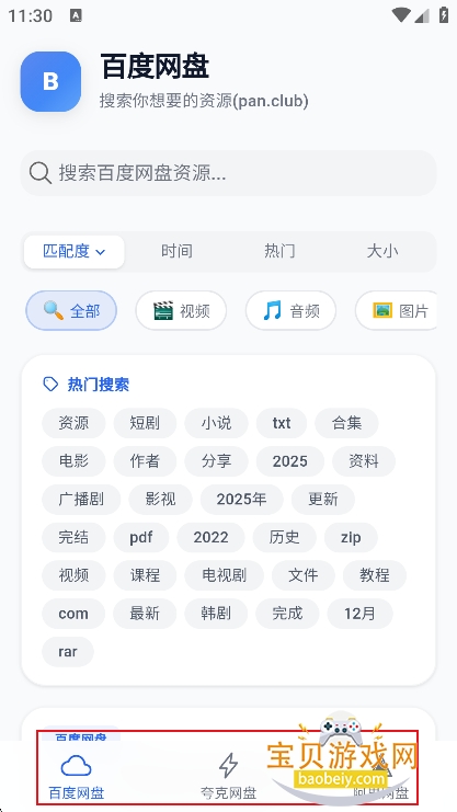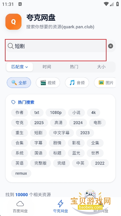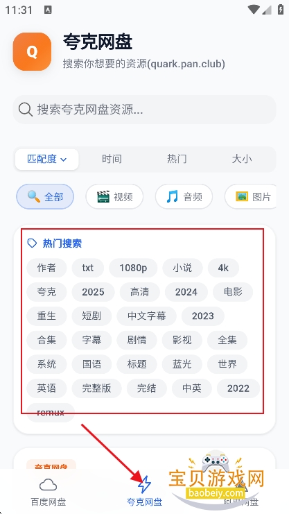 2、例如进入【夸克网盘】可以根据热门关键词检索