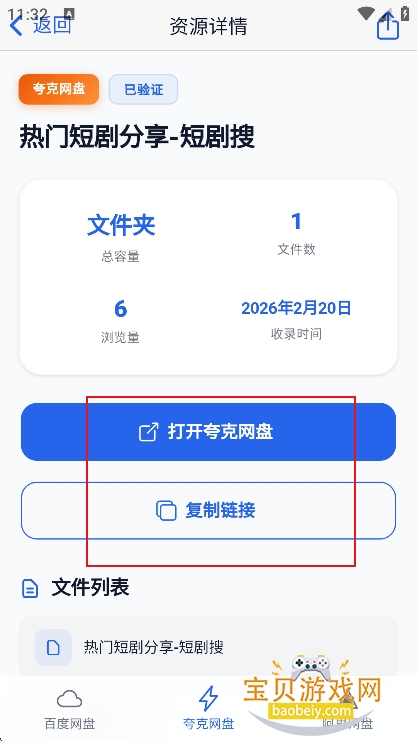 5、进入资源界面,可以直接复制链接到第三方,或者直接转存到网盘