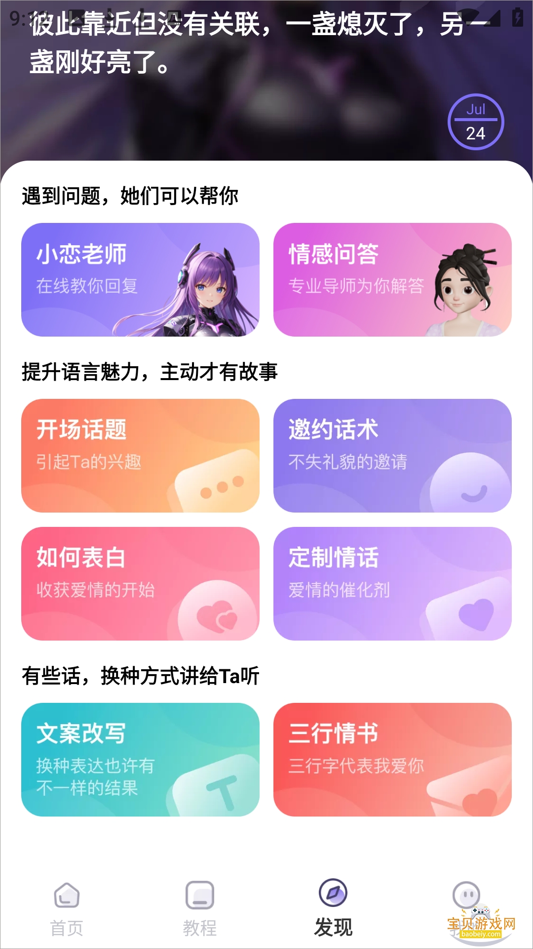 3、在发现页面提供各种话术,如开场话题、邀约话术等