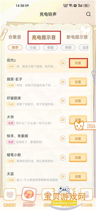 2、里面可以自己来选择,有充电的,充完的,以及充电提醒的音效