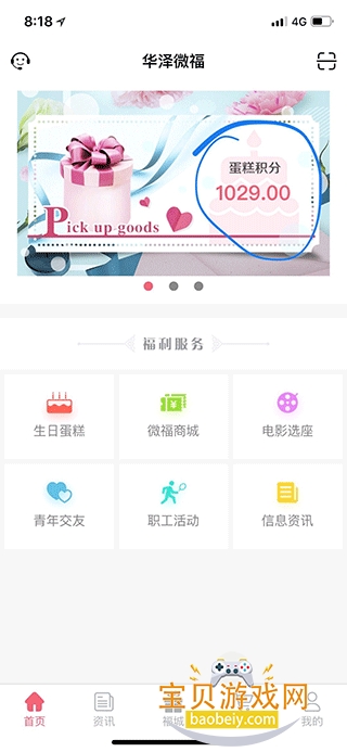 1、在首页,点击蛋糕积分图片。