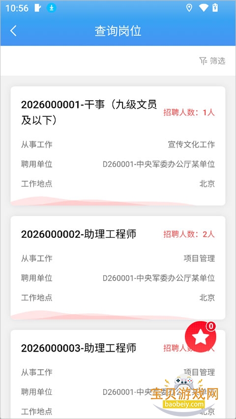 选择报名岗位:在招考信息中找到符合自身条件且感兴趣的岗位,点击进入岗位详情页面。
