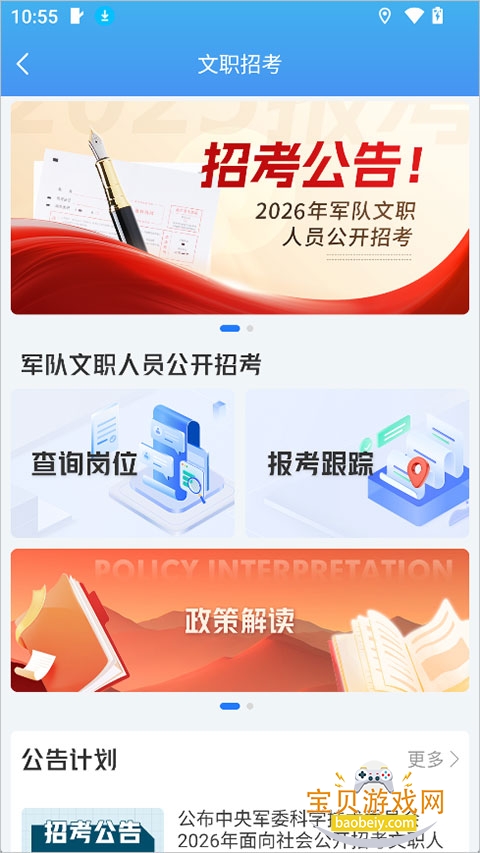 1.招考信息实时更新:及时发布军队文职人员招考的最新公告、岗位计划及报名时间等关键信息,让考生第一时间掌握招考动态。