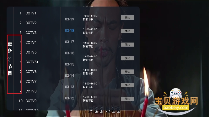 2、点击【节目】还可以预约节目,回放精彩影视内容