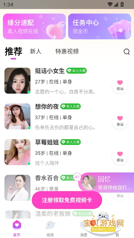 精准匹配推荐:基于用户兴趣、偏好、地理位置,通过算法24小时不间断推送契合的聊天对象,降低社交门槛。